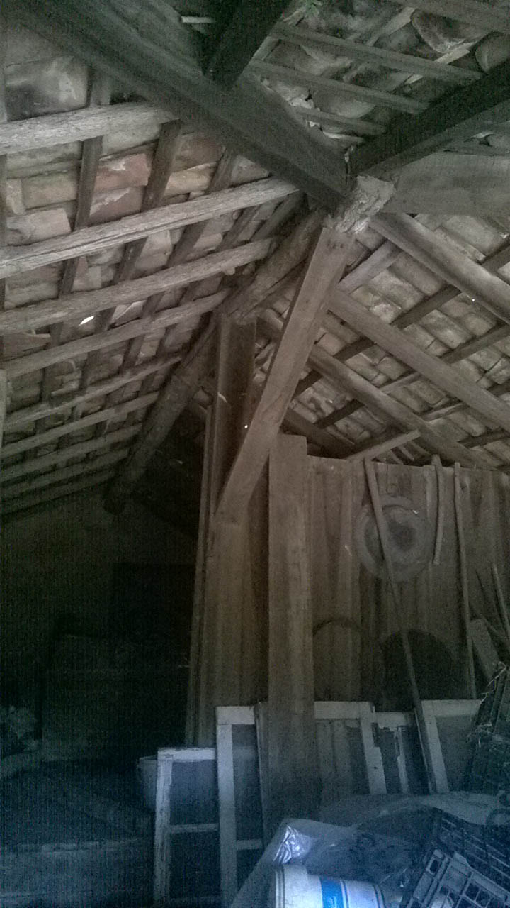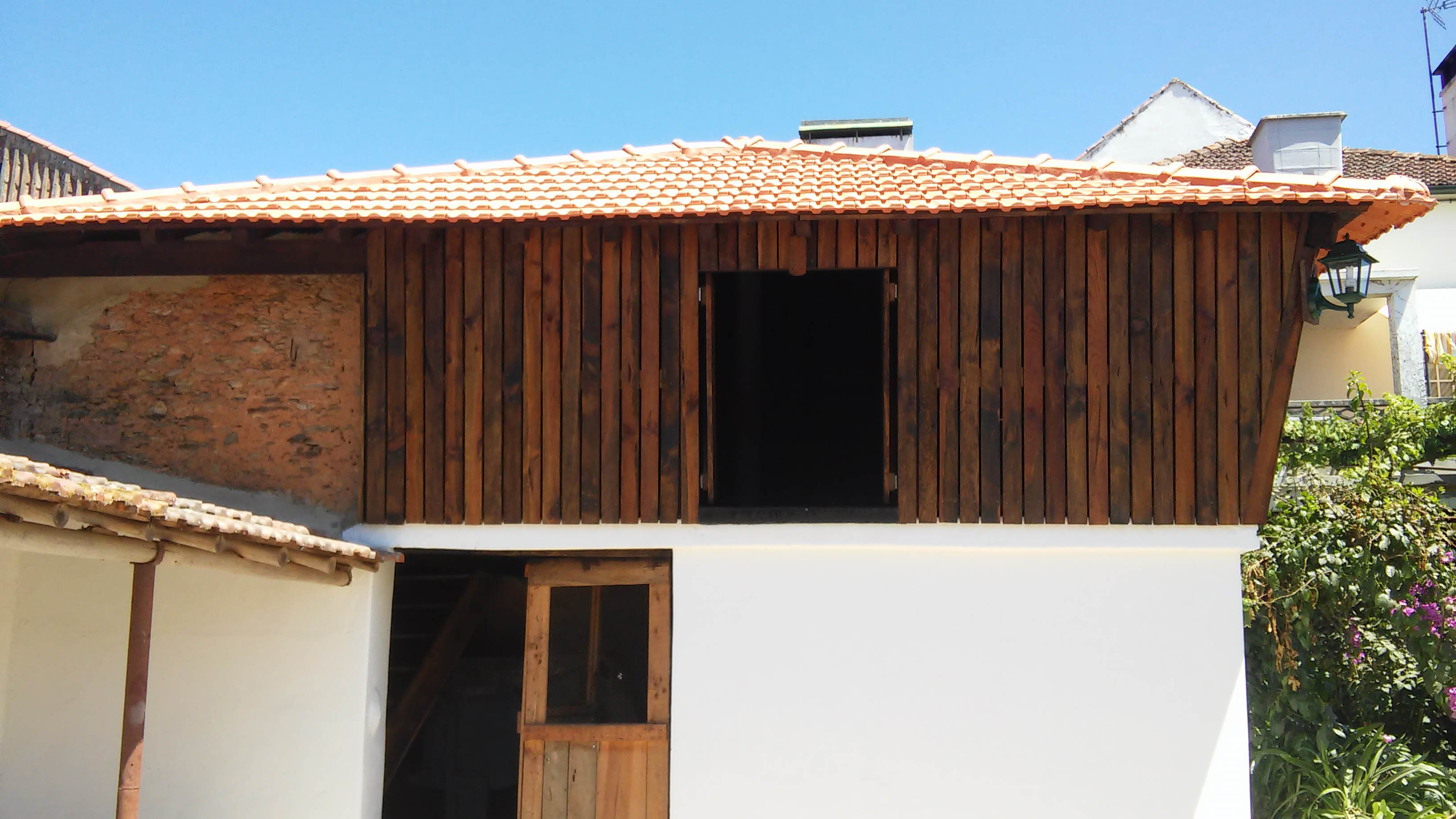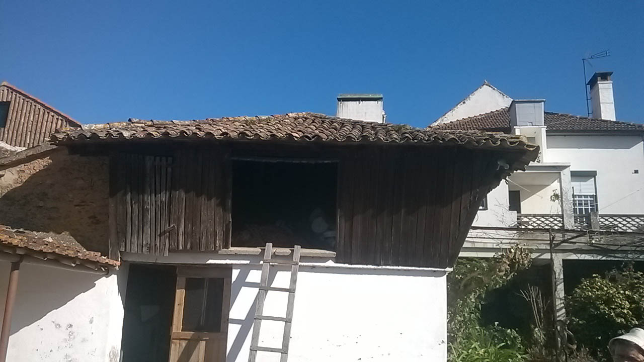 Recuperação de Espigueiro em ruinas. Recuperação de telhado com estrutura em madeira e paredes em madeira.